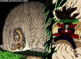 ორივე არის სრული ძალებით დისტანცია 20 მეტრი არცერთი არ არის ედო ტენსეით ბრძოლის ადგილი არის იქ სადაც 3 სანინმა იბრძოლა ერთმანეთზეც ინფორმაციას არ ფლობენ :) აბა ვინ ვის :)